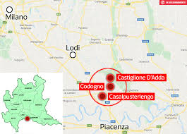- Transito o sosta dal 1 febbraio 2020 nei Comuni della "zona rossa": Bertonico, Casalpusterlengo, Castelgerundo, Castiglione d'Adda, Codogno, Fombio, Maleo, San Fiorano, Somaglia, Terranova dei Passerini (Regione Lombardia) e Vo' Euganeo (Regione Veneto)