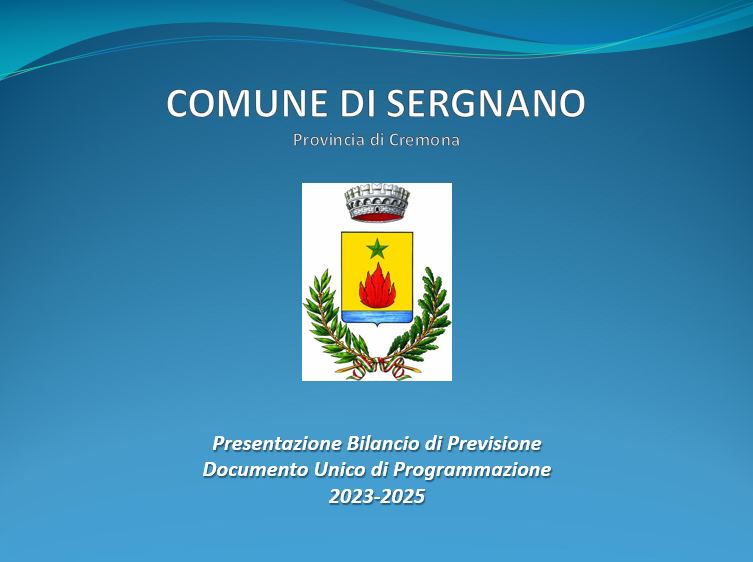 I testi integrali del Bilancio di Previsione 2023-2025 e del Documento Unico di Programmazione, come da delibera di Giunta Comunale, sono pubblicati all'Albo Pretorio online del Comune di Sergnano.