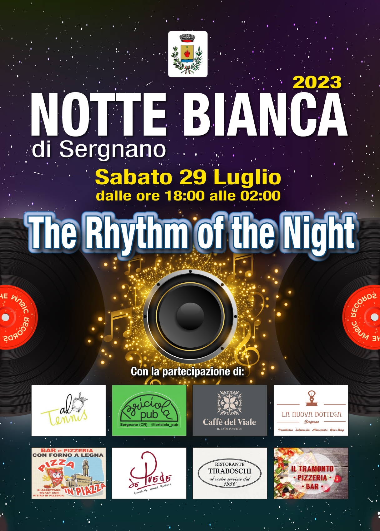 Sabato 29 luglio 2023 appuntamento con la Notte Bianca di Sergnano: bar e punti ristoro, street food, musica live e djset, mercatini e spazi per le associazioni, area giochi per bambini, animazioni a tema e raduno di auto tuning.