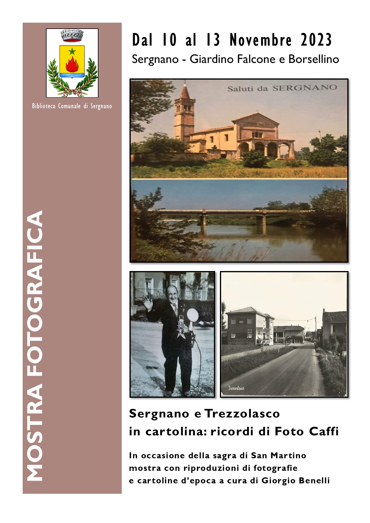 L'Assessorato alla Cultura di Sergnano organizza una mostra di carattere culturale in occasione della Sagra di S. Martino 2023 con l'esposizione di riproduzione di fotografie e cartoline d'epoca di Sergnano e Trezzolasco presso il Giardino Falcone e Borsellino -di fronte al palazzo Comunale-