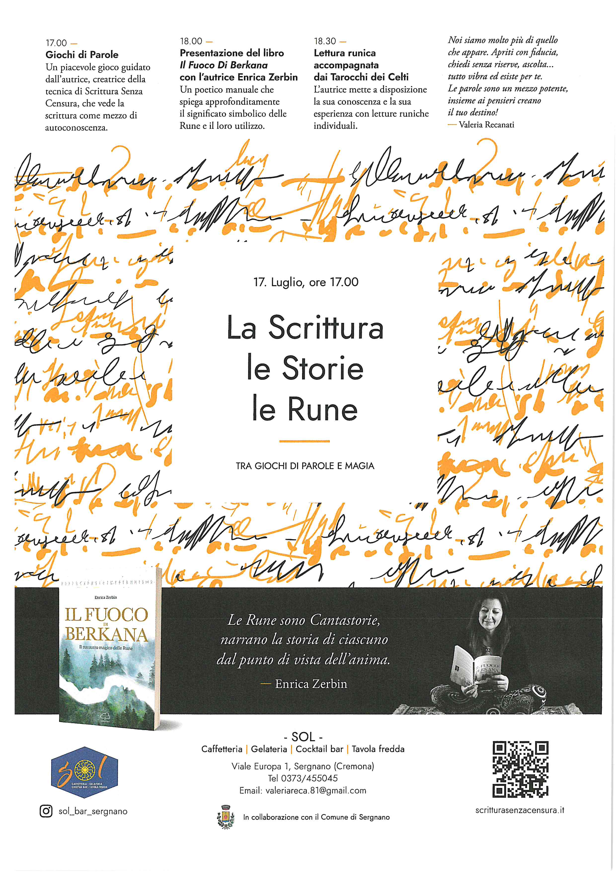 Sabato 17 luglio appuntamento con l'iniziativa "La scrittura, le storie, le rune" organizzata dal Sol Bar in collaborazione con la Biblioteca Comunale di Sergnano.