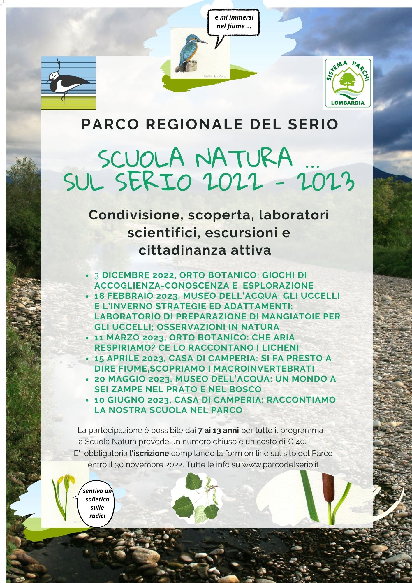 La SCUOLA NATURA nasce con l’idea di offrire ai giovani cittadini la possibilità di vivere e sperimentare il territorio in cui vivono, attraverso il contatto emozionale e diretto con la natura, in un’ottica di sostenibilità e immersione negli ecosistemi.