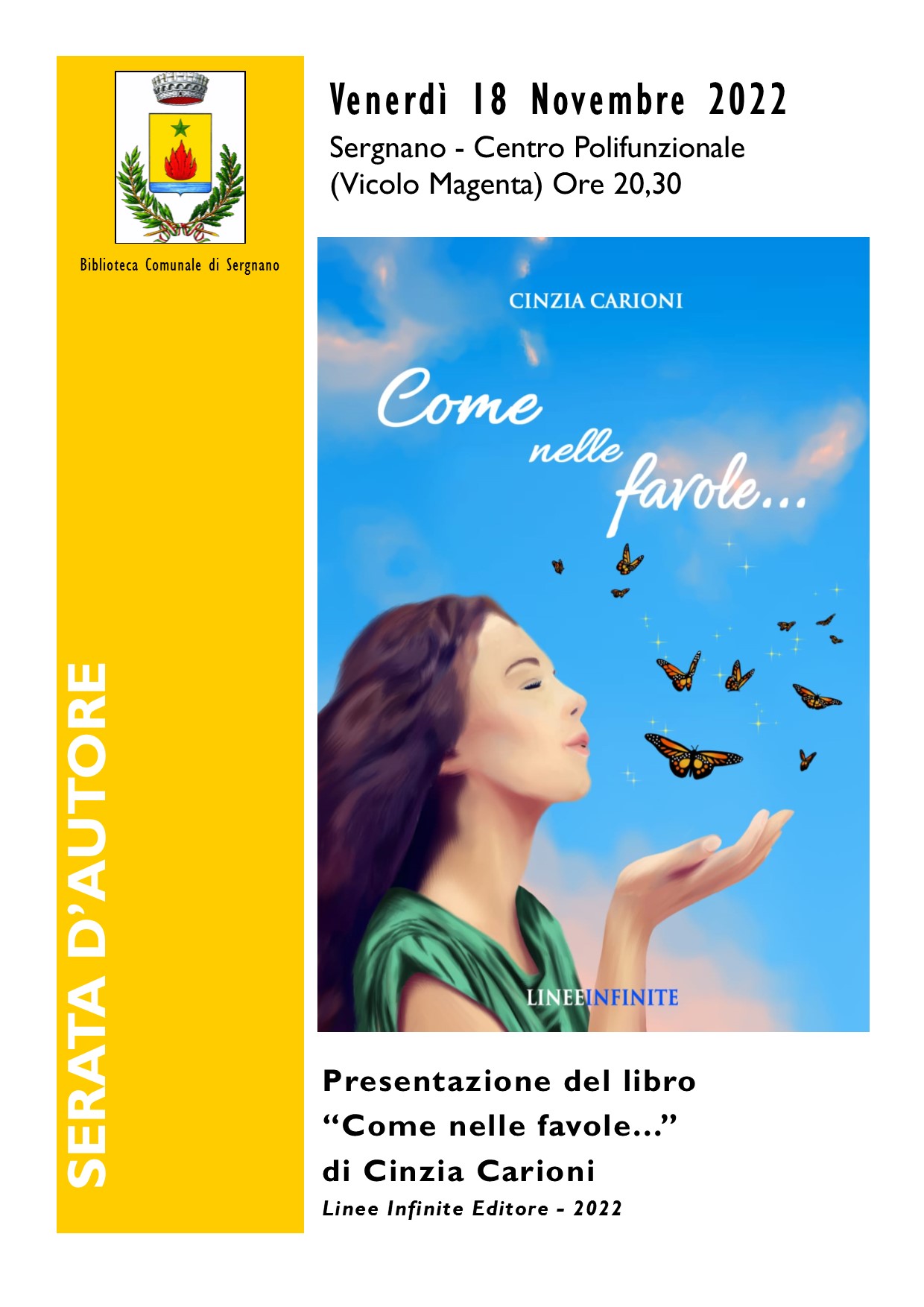 La Biblioteca Comunale di Sergnano organizza la presentazione del libro “Come nelle favole...” di Cinzia Carioni. Appuntamento venerdì 18 novembre 2022 alle ore 20.30 presso il Centro Polifunzionale di Vicolo Magenta.
