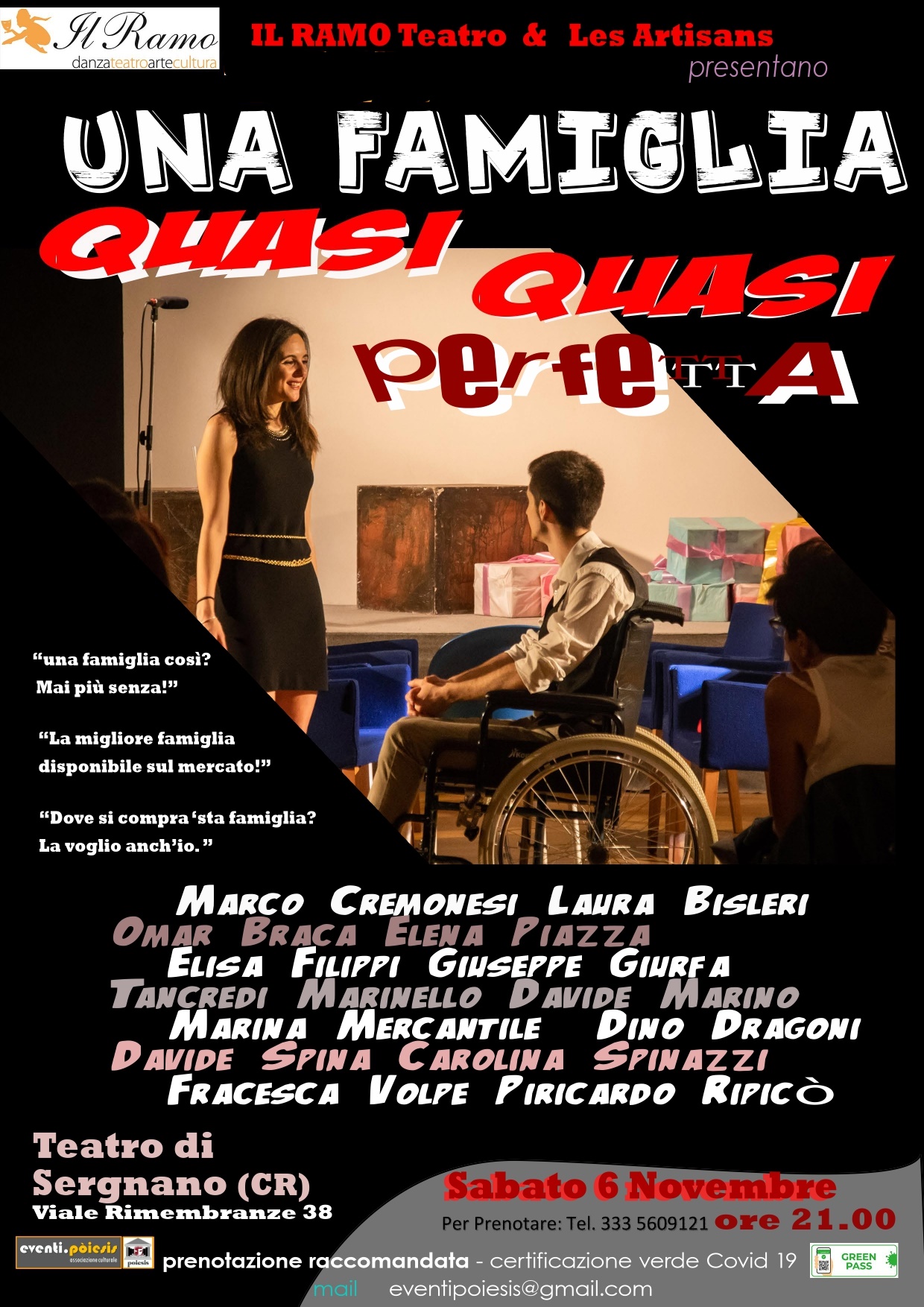 Sabato 6 novembre 2021 le compagnie Il Ramo Teatro & Les Artisans presentano lo spettacolo teatrale "Una famiglia quasi perfetta". Appuntamento alle ore 21.00 presso il Teatro dell'Oratorio di Sergnano (Viale Rimembranze).