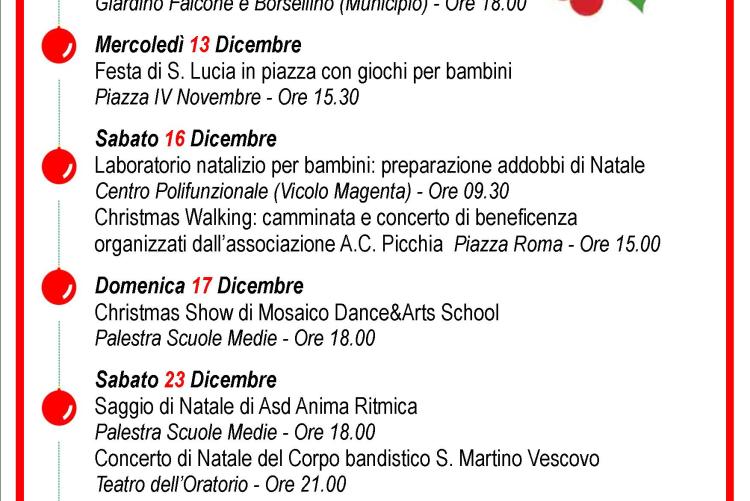 L'Amministrazione Comunale ha raccolto in un unico calendario le principali manifestazioni che si terranno nel periodo natalizio in paese. Il Comune di Sergnano ringrazia la Commissione Cultura e Tempo Libero e le associazioni locali per l’organizzazione delle iniziative in programma.