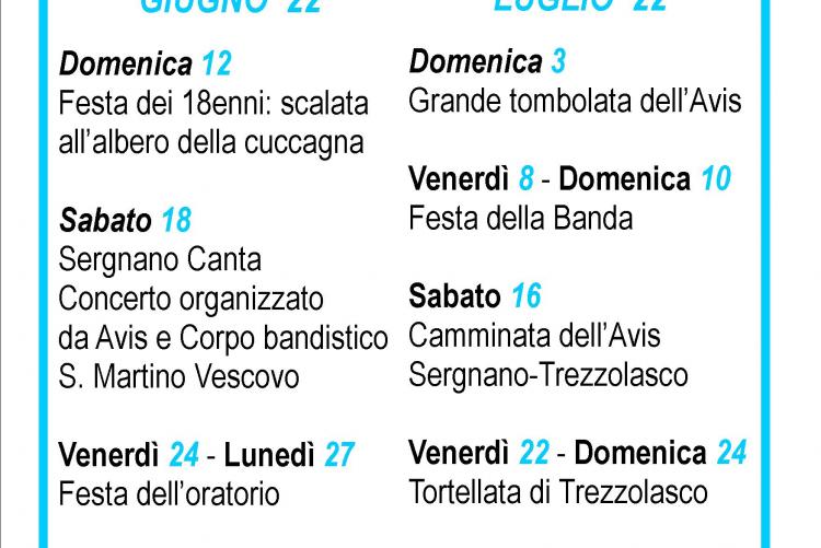 L'Amministrazione Comunale ha raccolto in un unico calendario le principali manifestazioni che si terranno nel periodo estivo (giugno-luglio 2022) in paese.