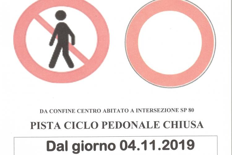 Da lunedì 4 a venerdì 8 novembre 2019 sarà totalmente chiusa alla circolazione la pista ciclopedonale da Sergnano a Pianengo per lavori di manutenzione straordinaria con nuovo intervento di rifacimento dell'asfaltatura stradale.