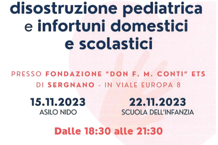 La Fondazione Don Francesco Maria Conti e l'Hospital Services organizzano due incontri formativi sul tema della disostruzione pediatrica e infortuni domestici e scolastici.